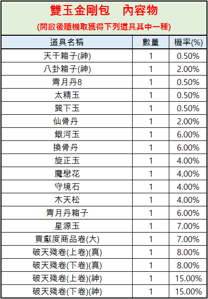親愛的大俠您好: 目前十二之天貳 Origin 【十面埋伏】伺服器例行性維護已結束, 還請各位大俠登入遊戲暢玩,造成不便請見諒。 ※網頁商城新增上架商品 1、雙玉金剛包