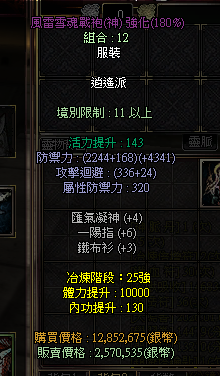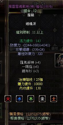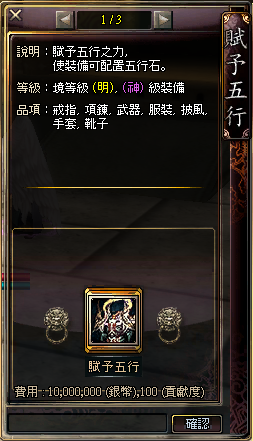 -每次進行五行賦予時,需消耗指定數量的銀幣及貢獻度。